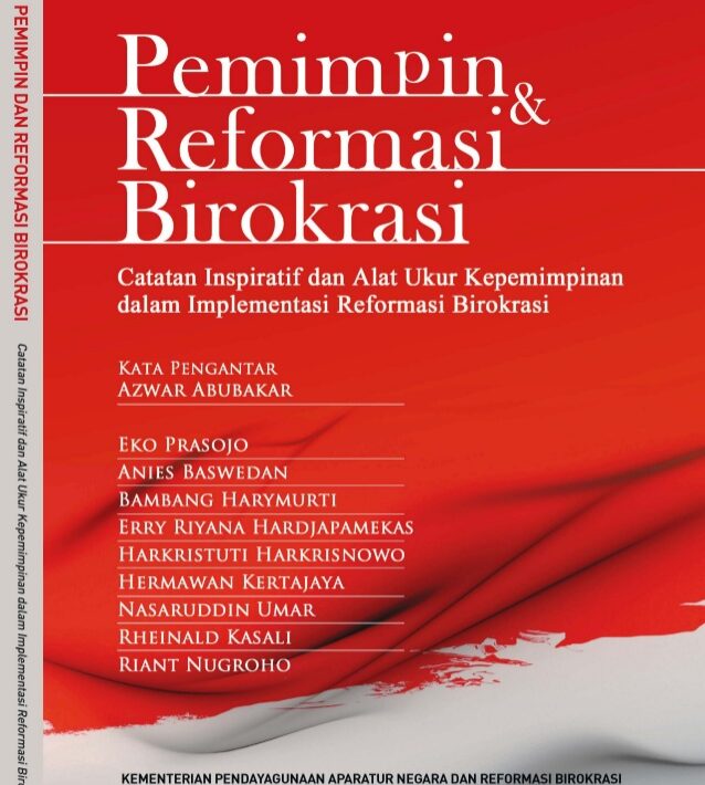 Pengarang : Pemimpin dan reformasi birokrasi Tahun Terbit : 2013. BUku ini berisikan catatan inspiratif bagi pimpinan dan pejabat pemerintah untuk implementasi reformasi birokrasi. Buku ini merupakan upaya refleksi sekaligus mendorong pimpinan kementerian/lembaga dan pemerintah daerah untuk selalu menyemarakkan pelaksanaan reformasi birokrasi di indonesia