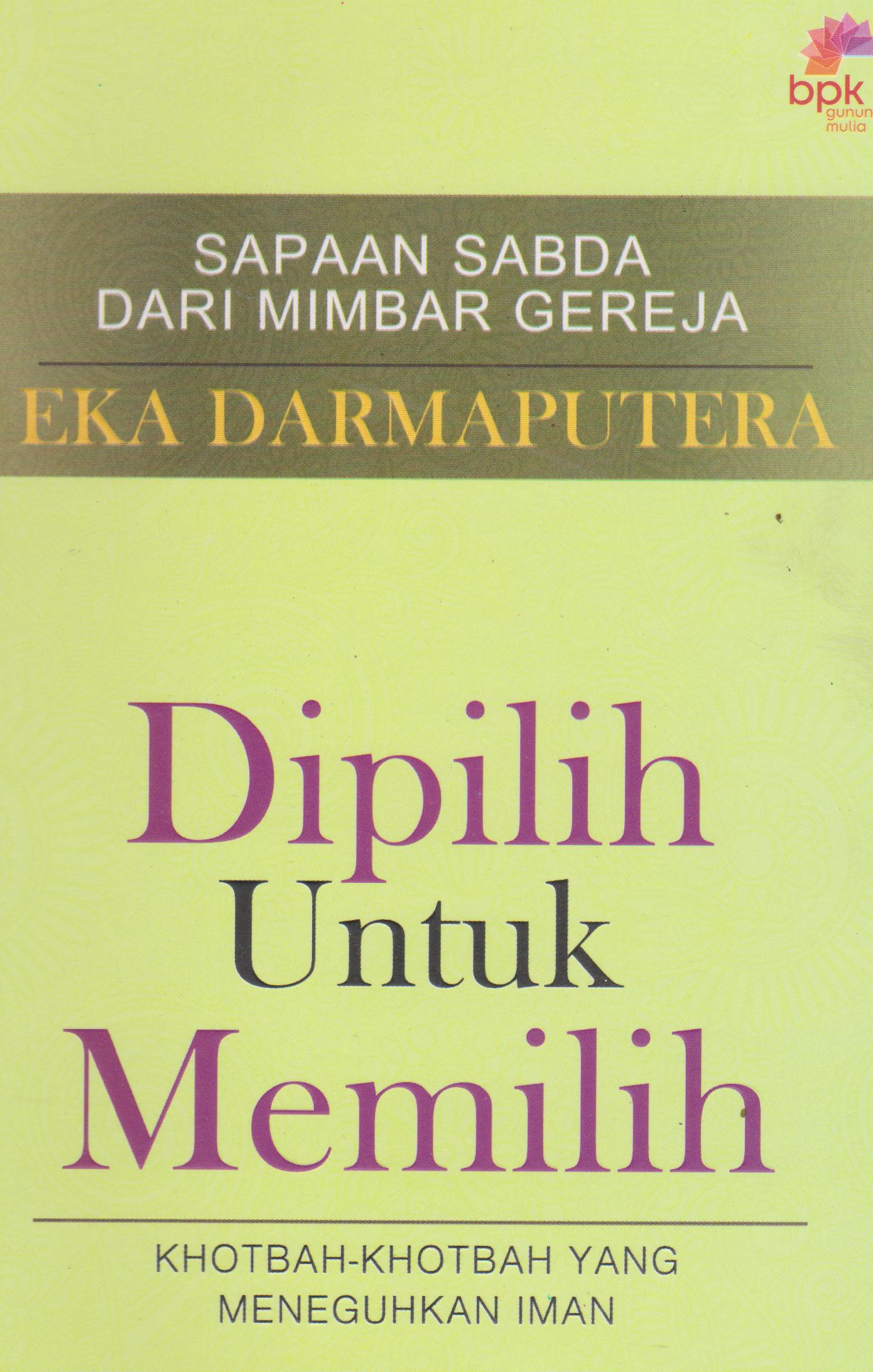 Dalam buku ini Eka mengajak kita untuk merenungkan apa artinya bahwa kita telah dipilih Tuhan beserta semua konsekuensinya. Beranikah kita pada gilirannya memilih Dia dalam hidup kita, mendahulukan Nya di setiap pilihan sulit dalam berbagai persimpangan hidup kita?